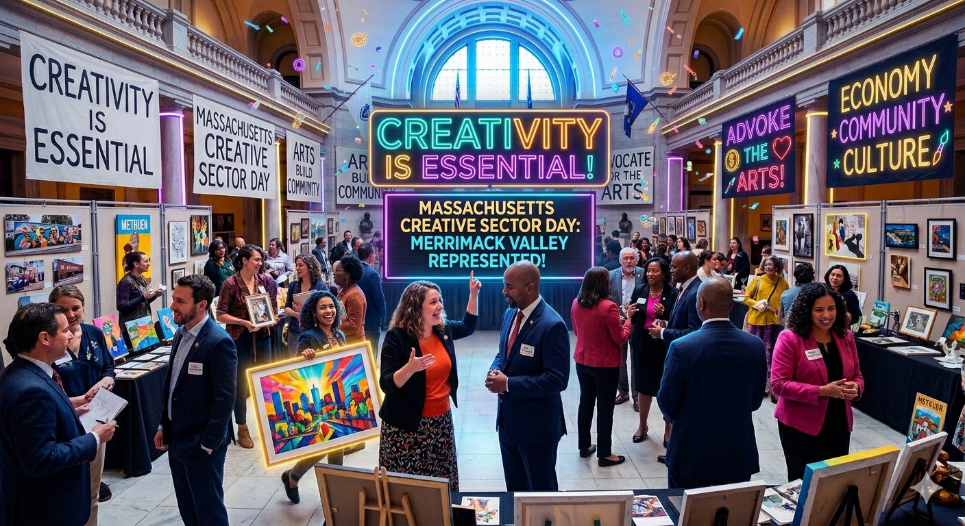 On March 3rd, I had the honor of representing Methuen and the Merrimack Valley at the Massachusetts State House for Mass Creative Sector Day. While being selected as one of 30 visual artists to exhibit was an incredible personal milestone, what stood out most was something much bigger than any one artist, it was the collective power of the creative community coming together in a shared space of advocacy.
