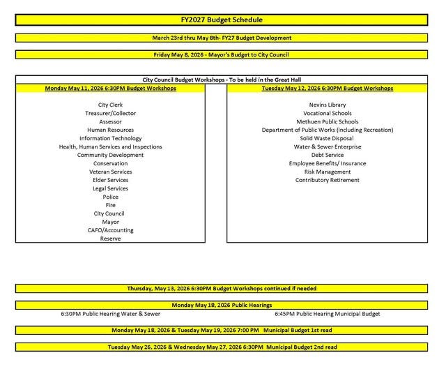 Methuen operates on a fiscal year that runs from July 1 to June 30. That means every year, the city must have a fully approved spending plan in place before the new fiscal year begins. The budget covers everything from police and fire to road maintenance, city administration, and schools.